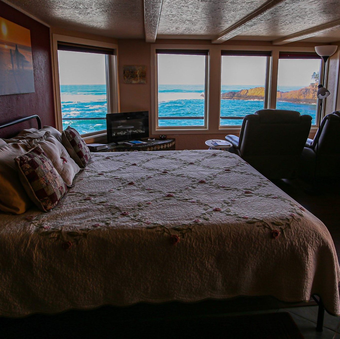 When the whales aren’t visiting, you can relax and enjoy the soothing sound of crashing waves just outside your door.