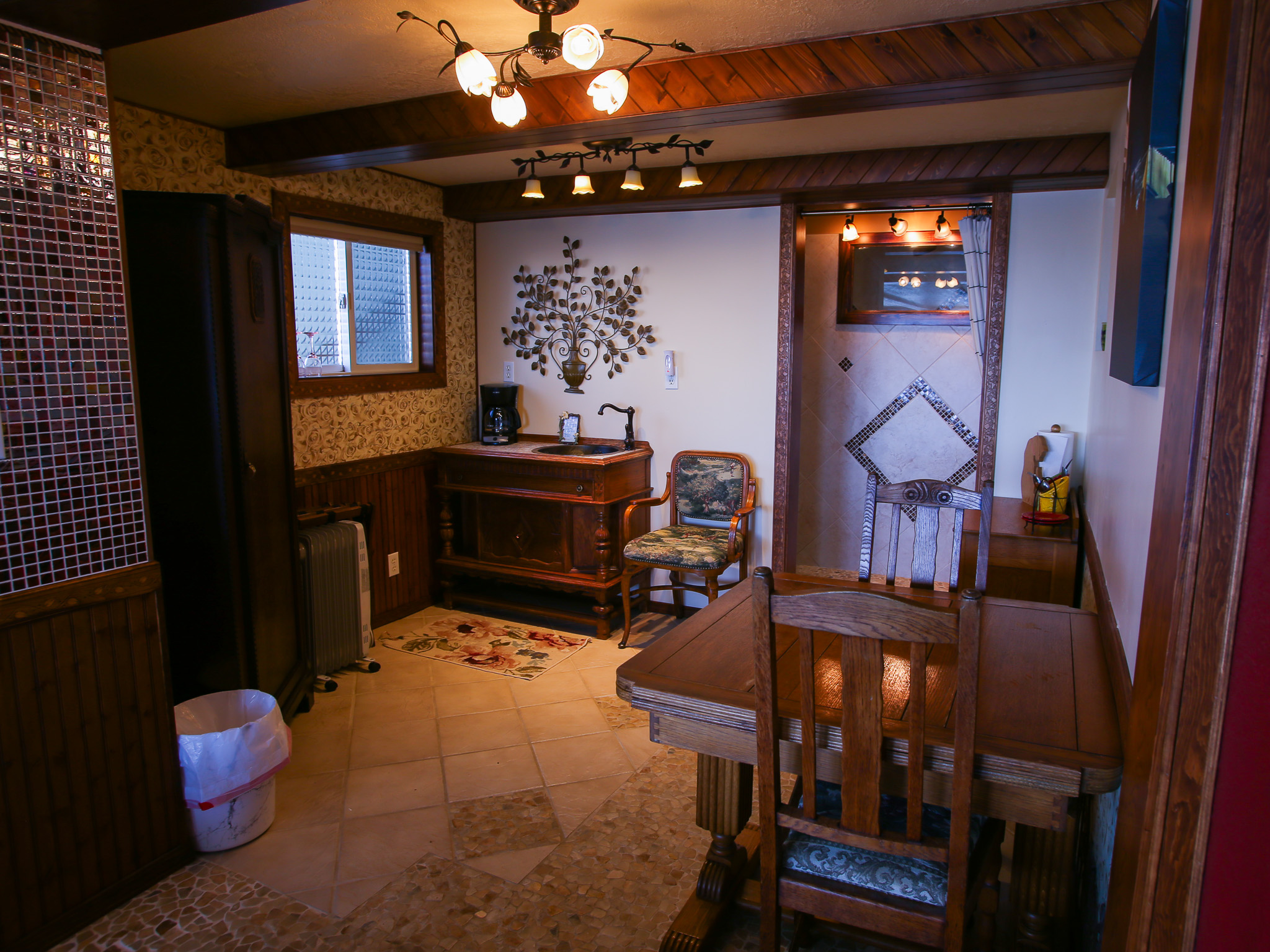 Your Suite ~~ Designed with a flare of antiques and elegance, we offer you all the comforts of home. The warmth and charm of a gas fireplace. Soft robes and blankets to wrap up in, while cuddling on the sofa & gazing out across the majestic ocean.